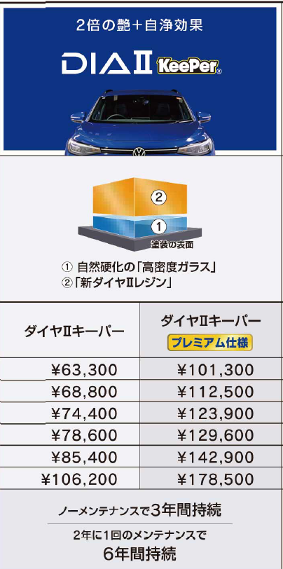 【Wダイヤモンドキーパー】ガラス被膜を+1上乗せ