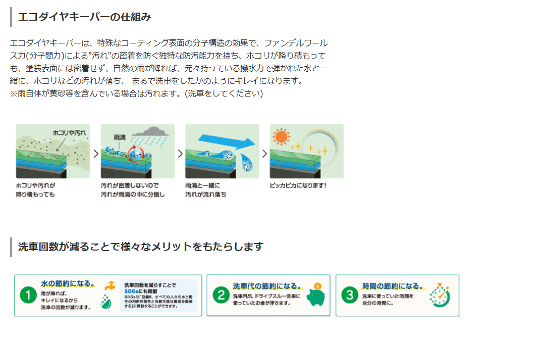 ノーメンテナンス、洗車だけで1年耐久