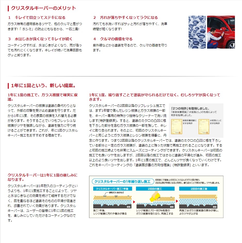 透き通るガラス被膜で1年に1回、新車に戻る新しいカーライフの形。
