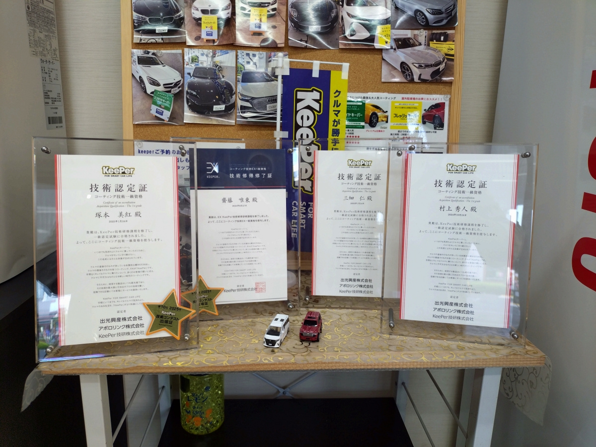 コーティング技術1級資格者を4名揃えていますので、いつでもコーティングを施工出来ます。