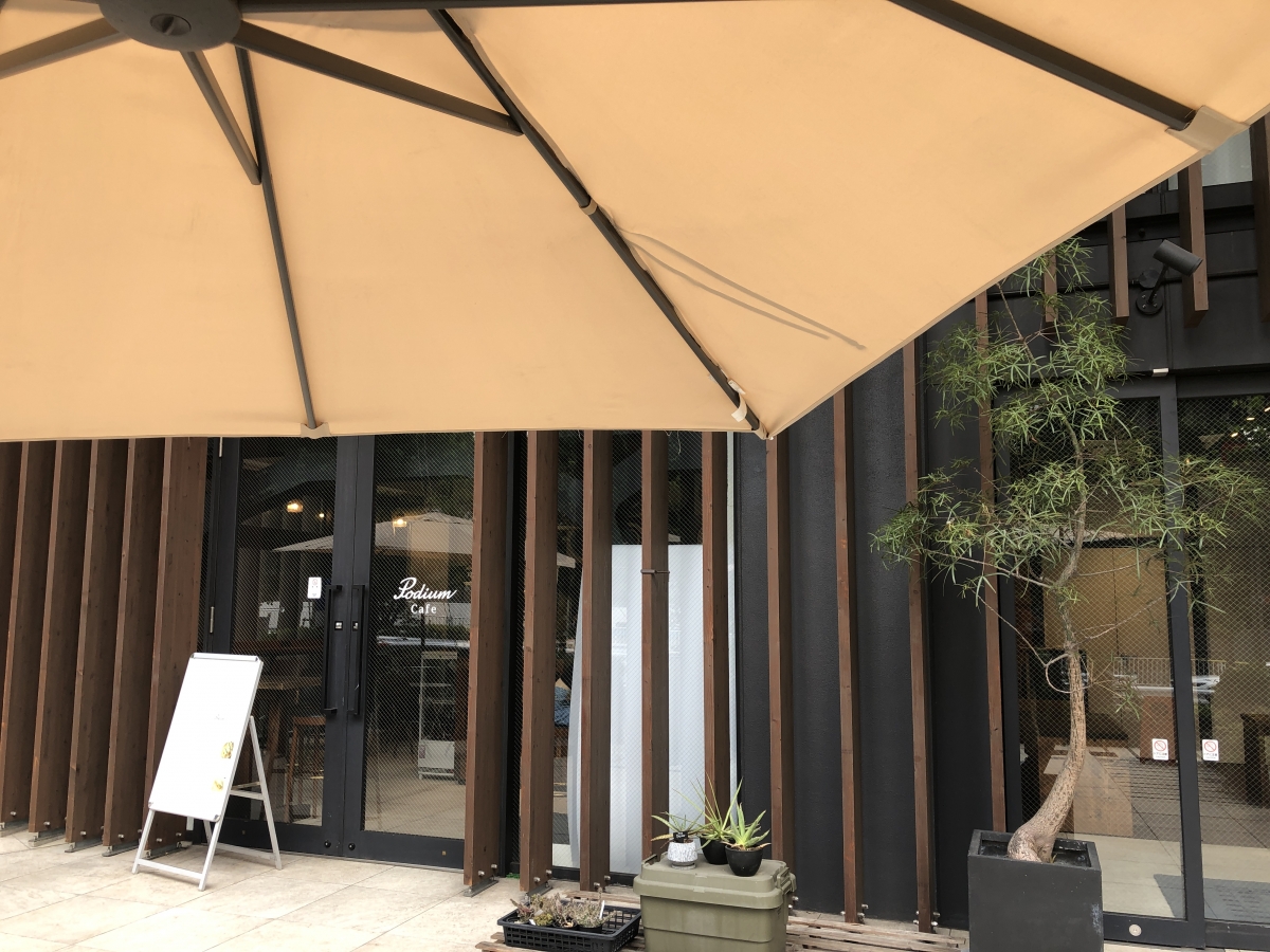 パーキングタワーから当店へ向かう間にある「Podium Cafe 」(ポディウムカフェ)