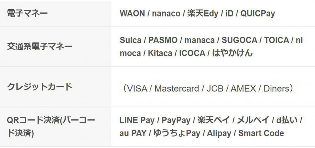 A.お支払いは現金をはじめ、各種クレジットや下記の電子決済もご利用いただけます。
