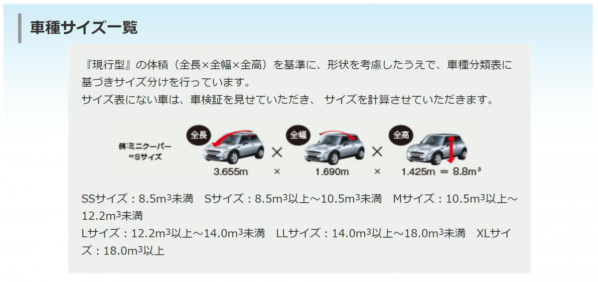 Q.車の大きさで値段が変わるけど、自分の車のサイズがわからない