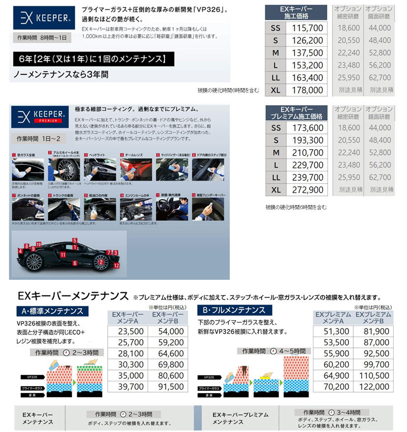 A.当店はKeePerLaboと同じ、お車の体積でサイズ分けをさせていただいております。