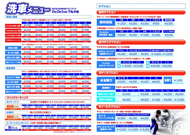 ★下丸子店の洗車メニューになります★スタッフによる洗車はもちろんスタッフが拭き上げまでする機械洗車も完備!!ぜひぜひ!