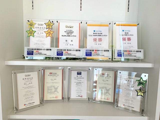 さらに当店のスタッフは、キーパー技研の指導のもと、定期的な技術上達会・社内コンテストの実施、全国キーパー技術コンテストへの出場で、常に技術レベルを磨いておりますので、安心してお任せください!