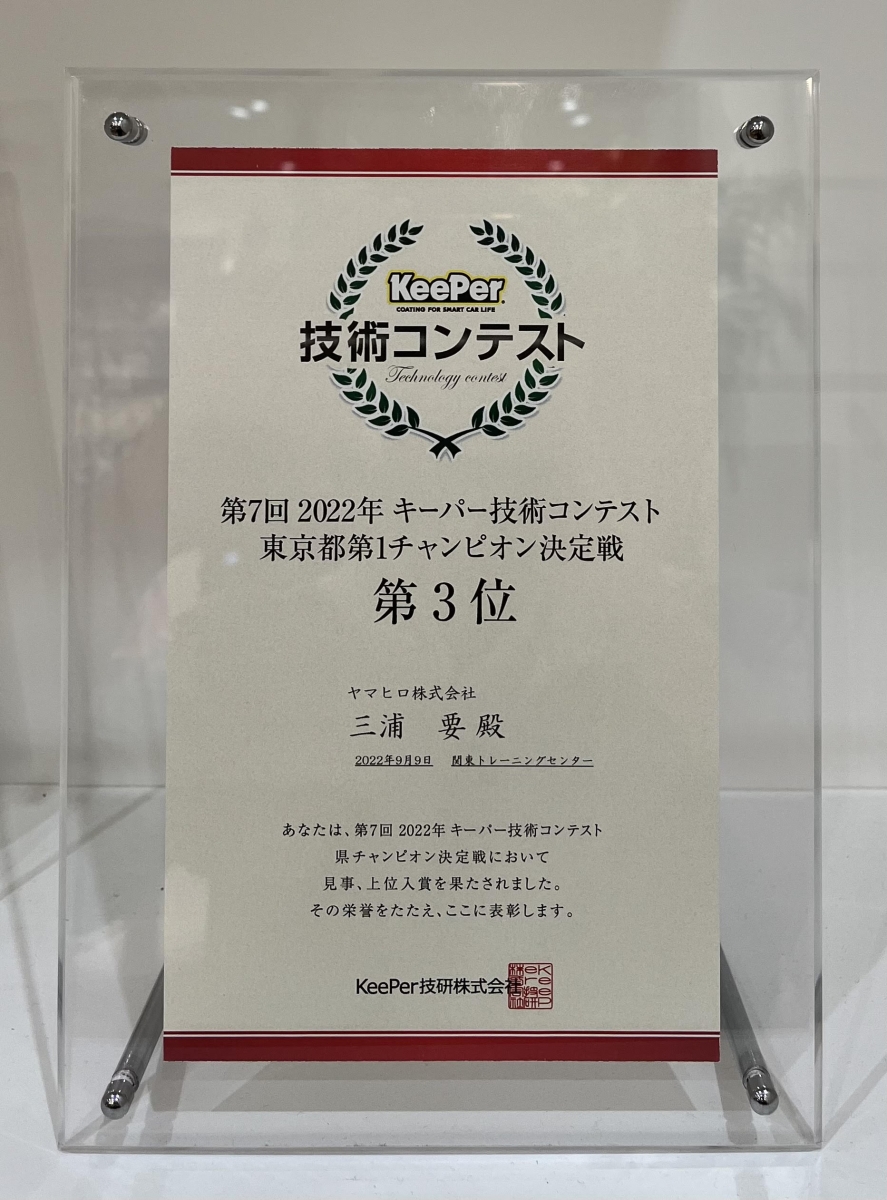 2020年 第4回ヤマヒロKeePer技術コンテスト 優勝