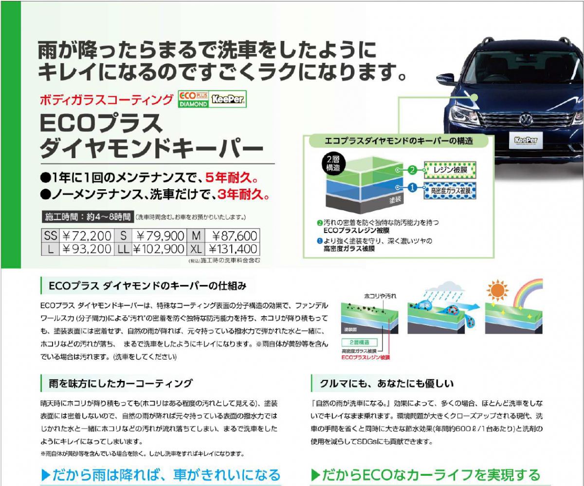 新商品 エコダイヤモンドキーパー!今までの常識を上回る!雨の日に車が綺麗になる♪♪