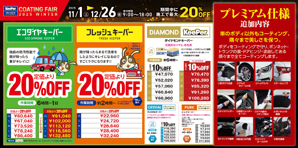 対象のコーティングがなんと20%オフ♪