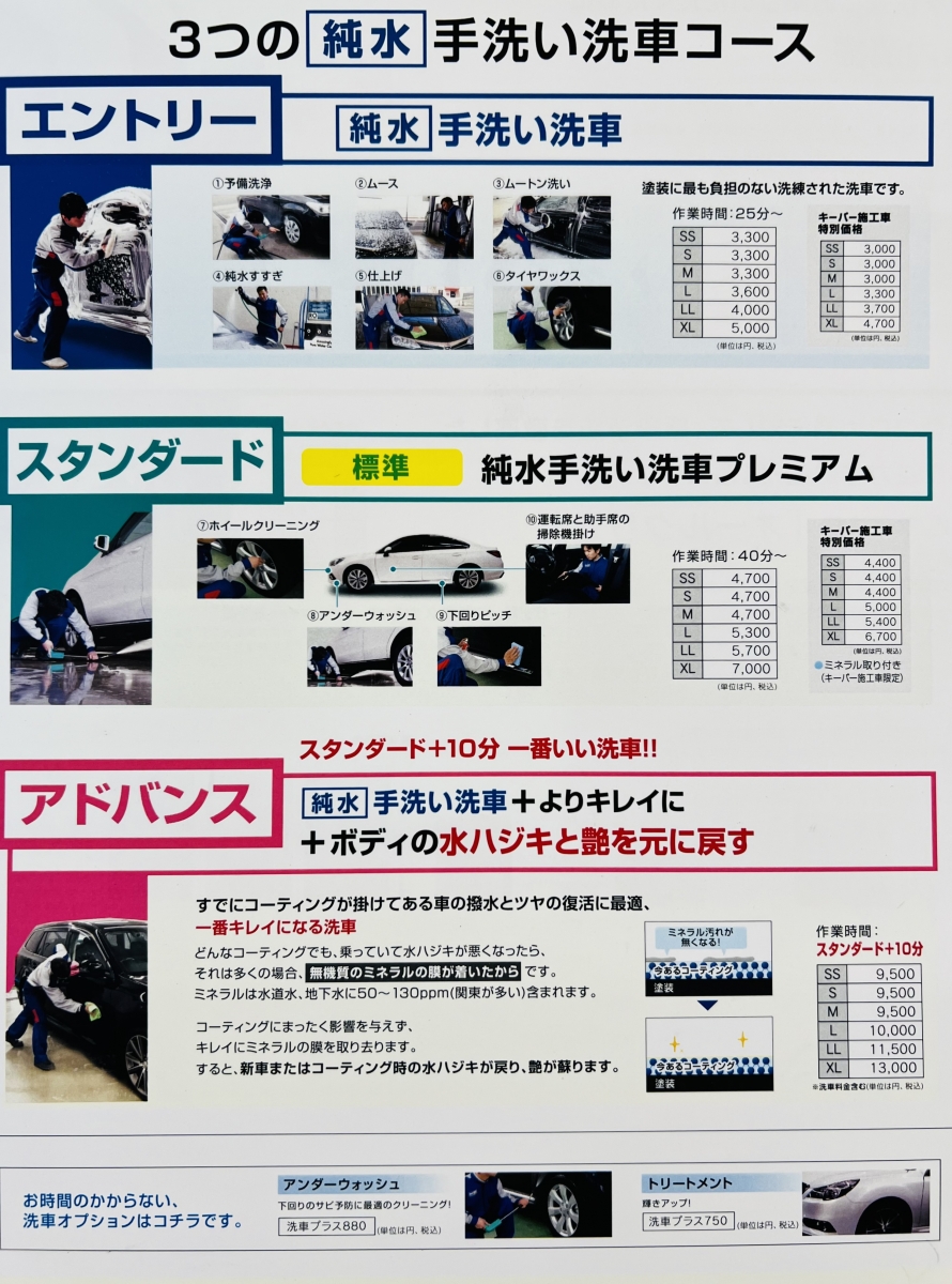 お客様のご要望に応じた洗車メニューをご用意しております。