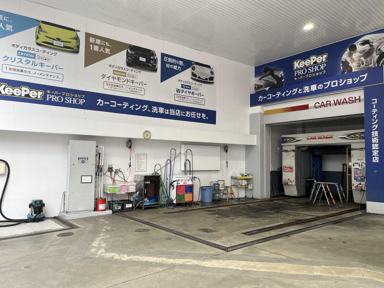 当店は屋根付きコーティング場で施工から最終チェックまで行います。 天候に左右されず施工が可能です!