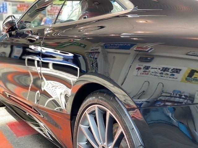 ボディに付いた水滴はまるでボールのようにボディを滑り落ち、ガラスコーティング独特の深みがあるツヤにビックリです!