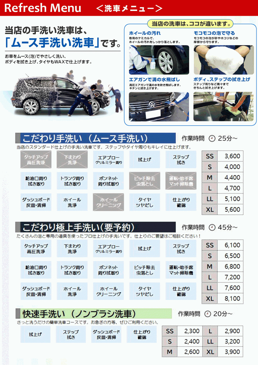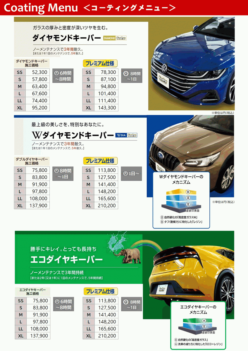 ☆ 洗車・コーティングメニュー ☆