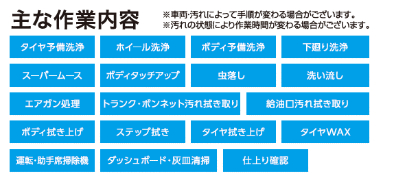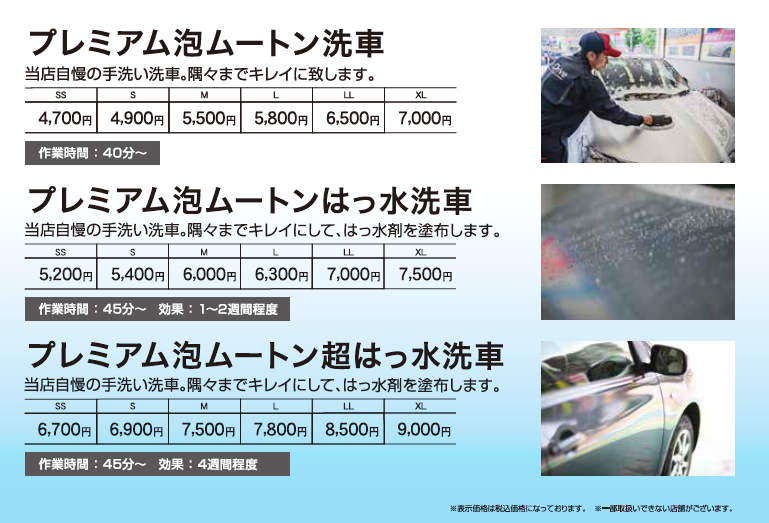 手洗い洗車機及び、ドライブスルー洗車機も完備しており、施工後のアフターフォローまで徹底的にさせて頂いております。