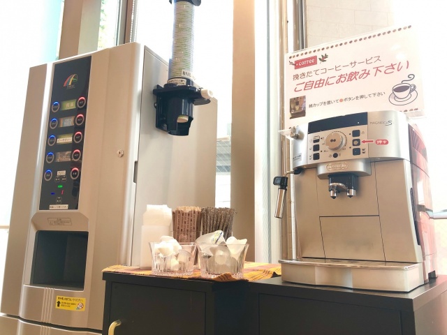 無料ドリンクサービスとして豆を挽いて淹れるコーヒーやお茶などもご用意しております。