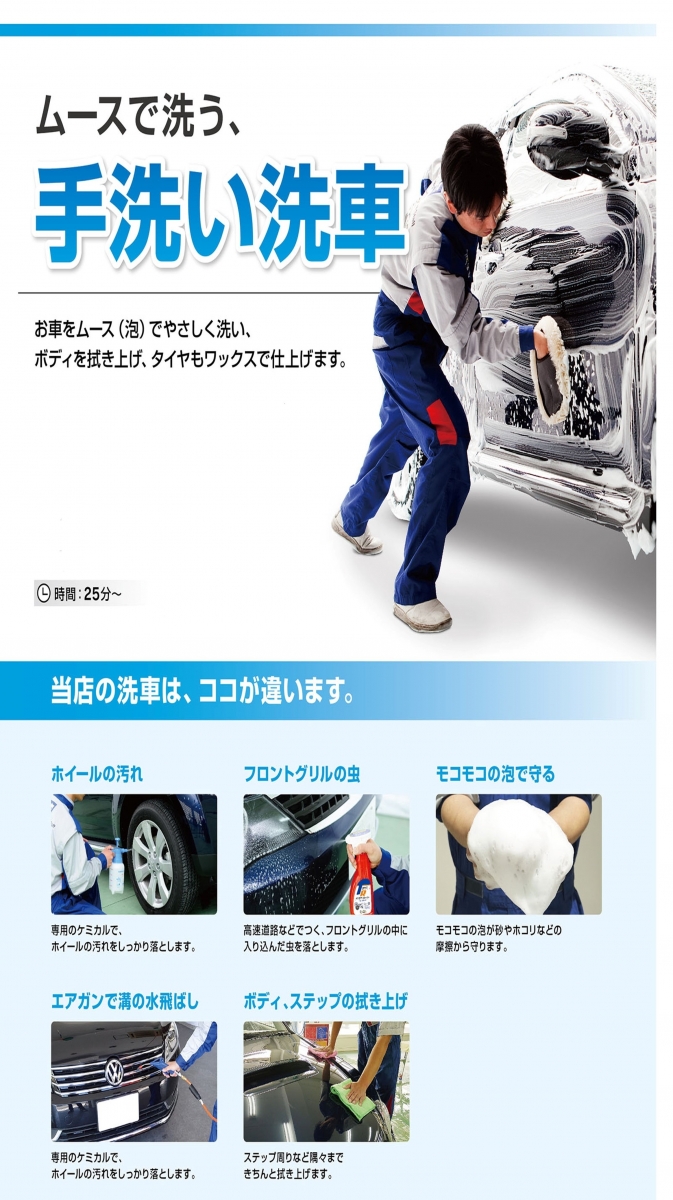 A お車のサイズにもよりますが、30分程で終わります。