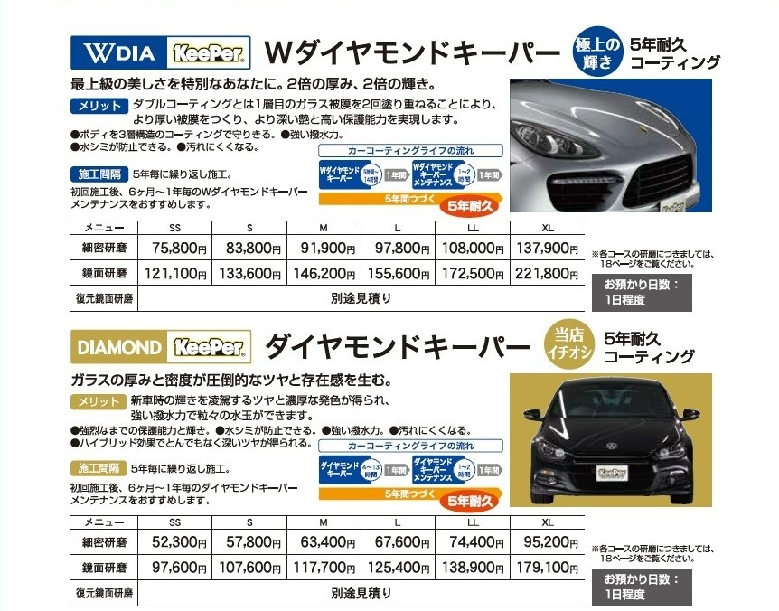 ※KeePerコーティングを既にされていてボディリペアをご注文いただいた場合 ボディリペア施工ヶ所にコーティングを部分施工することもできます。 詳しくは店舗スタッフへご相談ください。