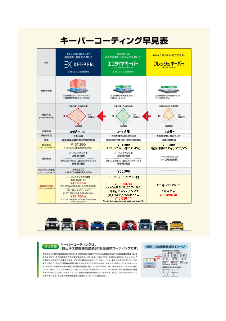 キーパーコーティングは楽して得する実用品!汚れにくく洗車回数が減り、快適なカーライフをお約束します。