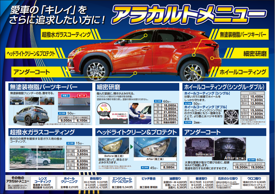 A:実際にお車の汚れをご確認させて頂き、適切なメニューをご案内させて頂きます!
