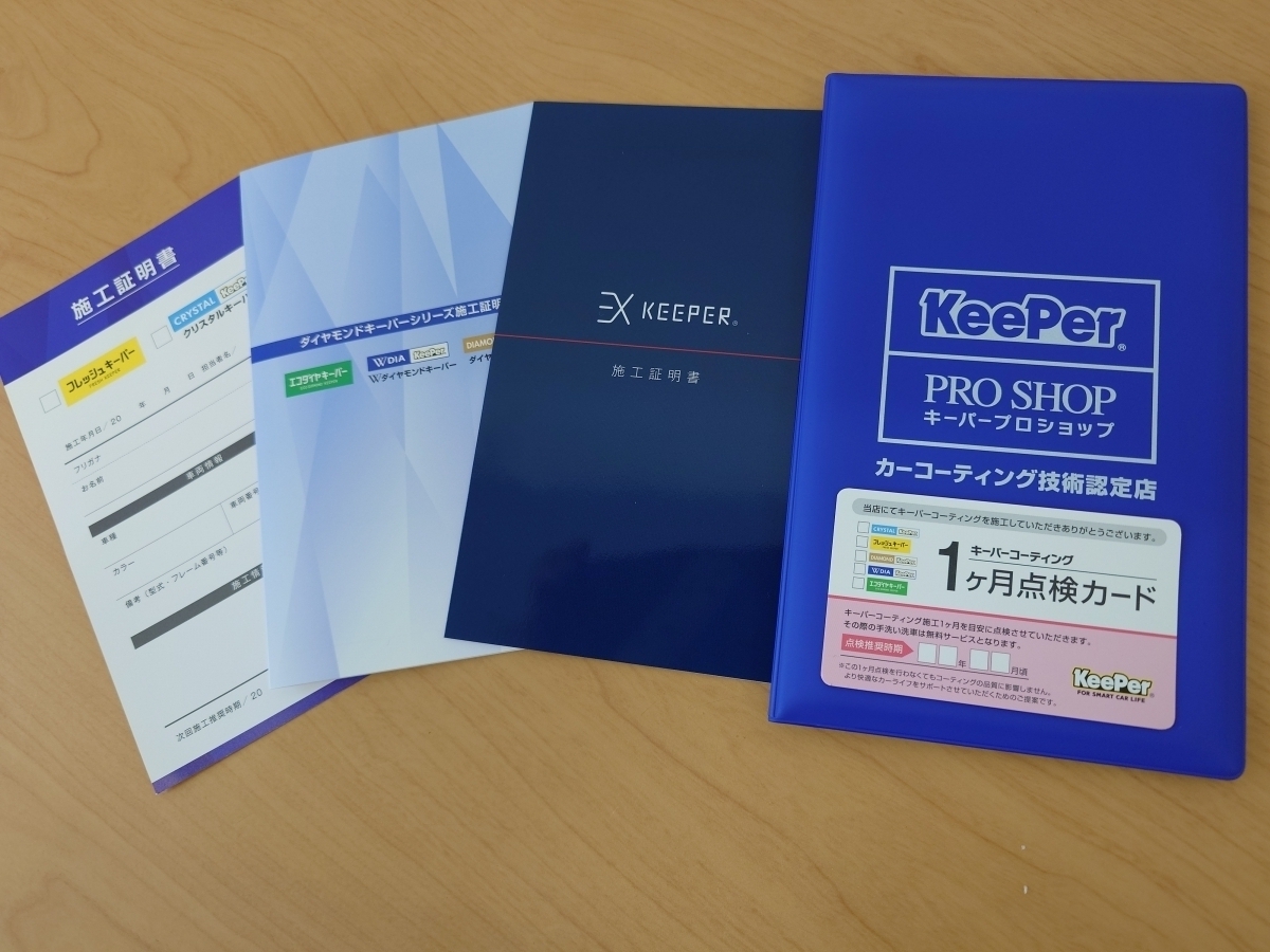 当店ではコーティングの施工証明書を発行しておりますので、万が一お車を板金修理などされる場合でも、再施工(部分施工)が自動車保険の適用になる場合がございますので大切に保管してください。