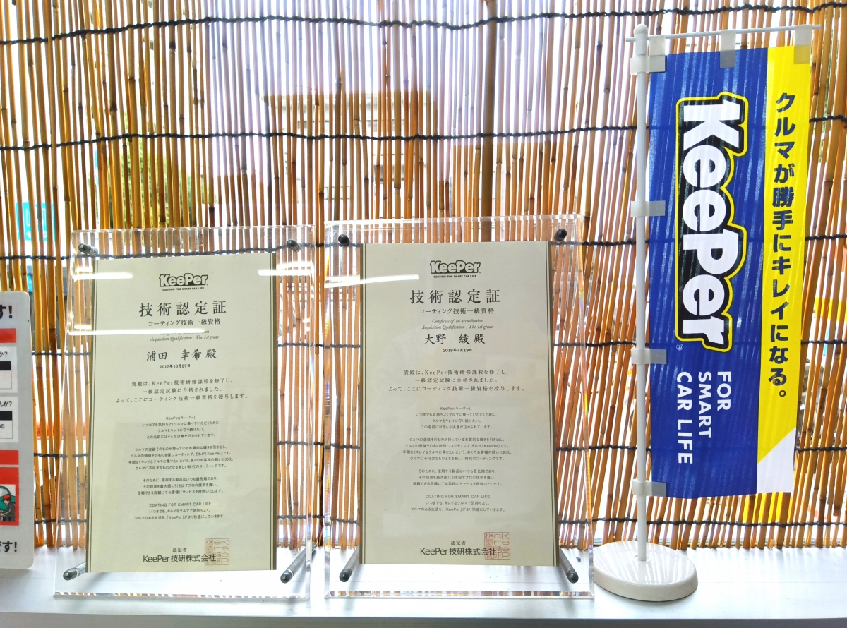 当店はKeePer技研が定めた技術認定資格の1級保有者が2名在籍。