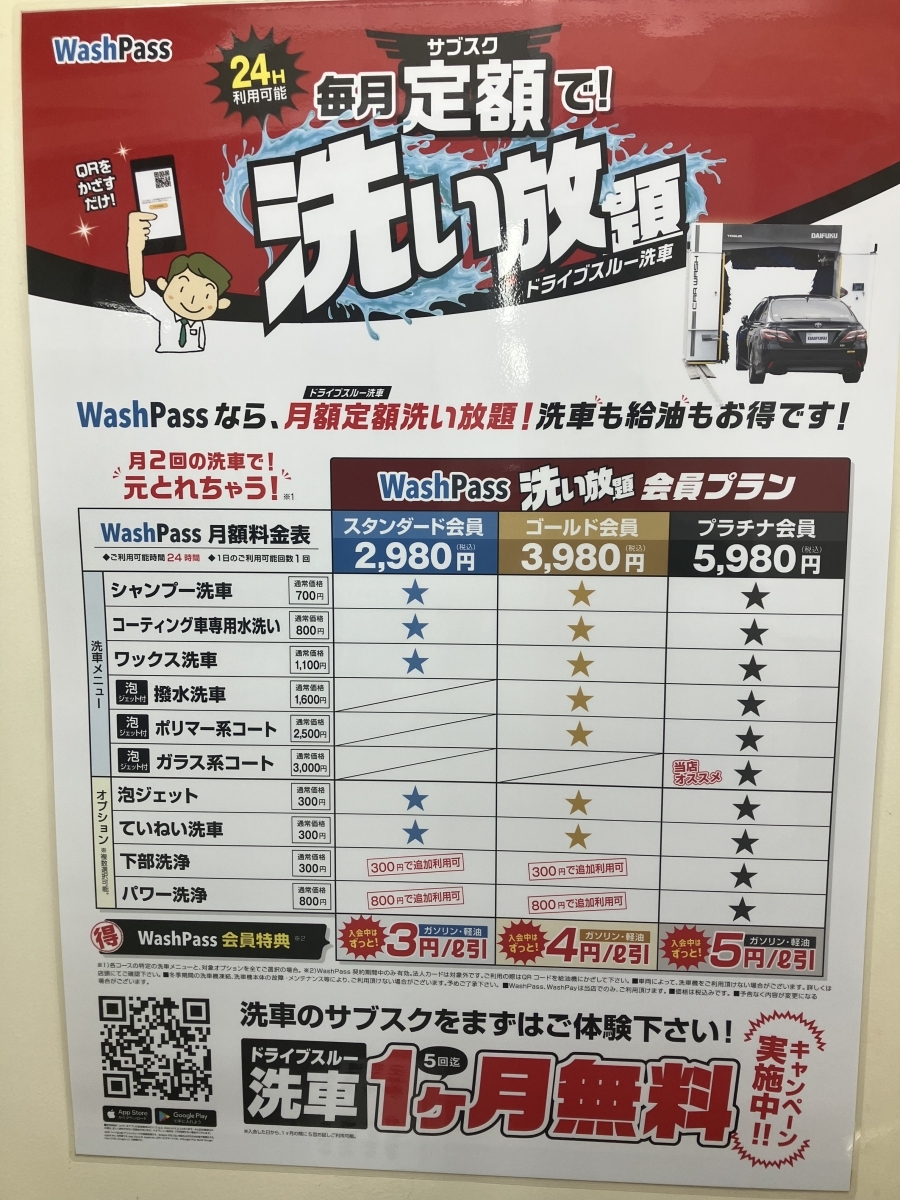 サブスク機能も導入!1ヶ月間!洗いたい放題(^_^)/