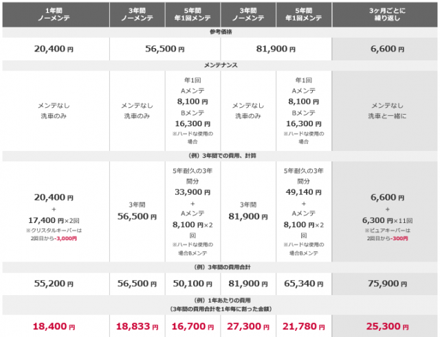 お客様の声に合わせたコーティングメニューをご提案。