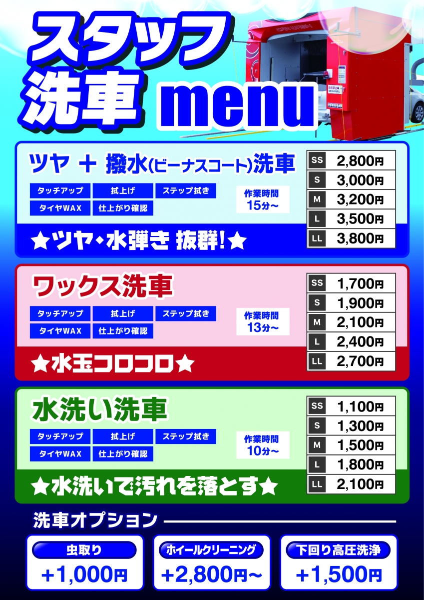 手洗い洗車も実施致しております。洗車だけでもお気軽にお越しください。