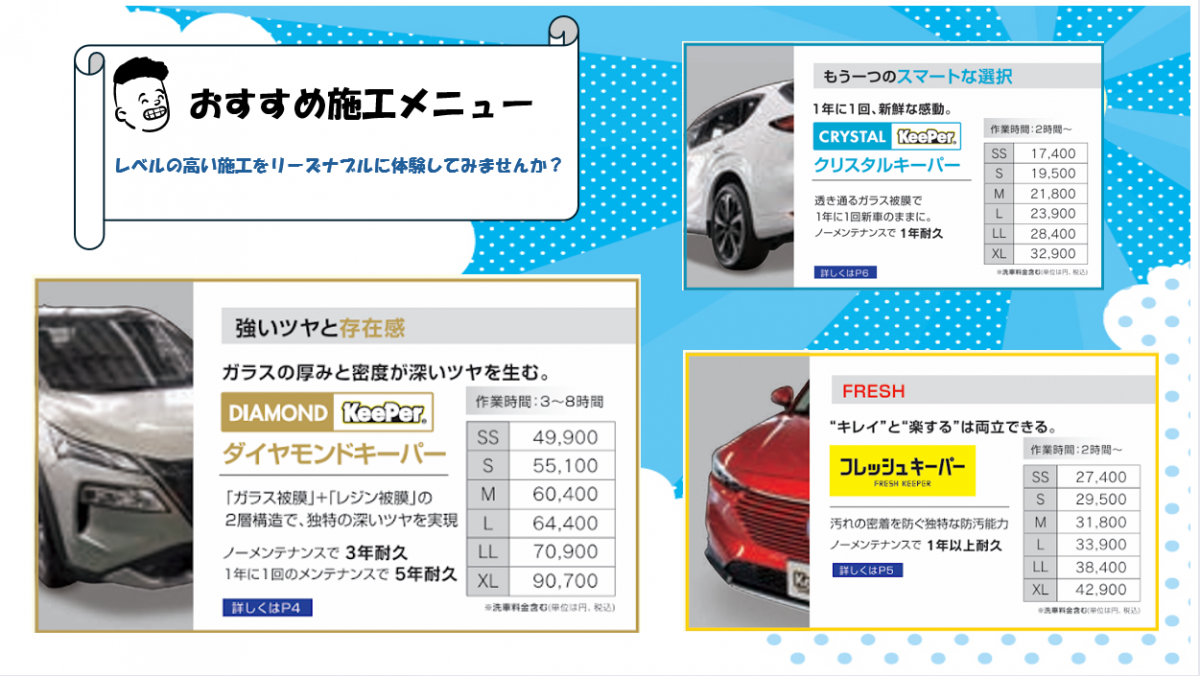 当社のコーティングなどの自動車整備関連サービスをご利用の際にも是非チェックしてみてください。