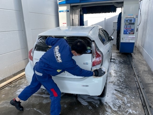 近年では、セルフ洗車が主流ですが当店では機械洗車も私たちスタッフが作業させて頂きます。
