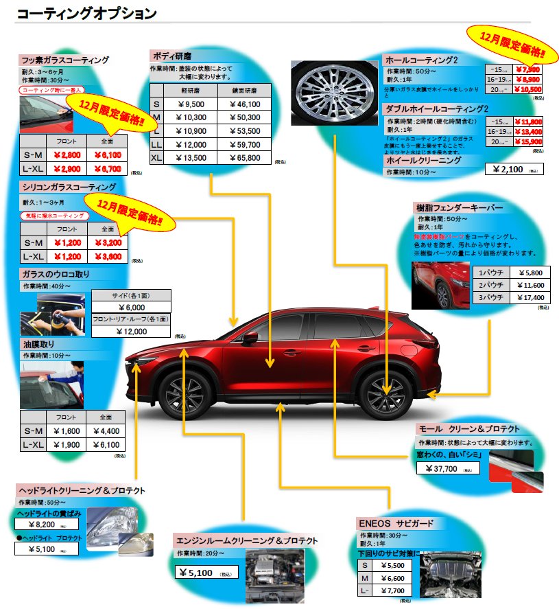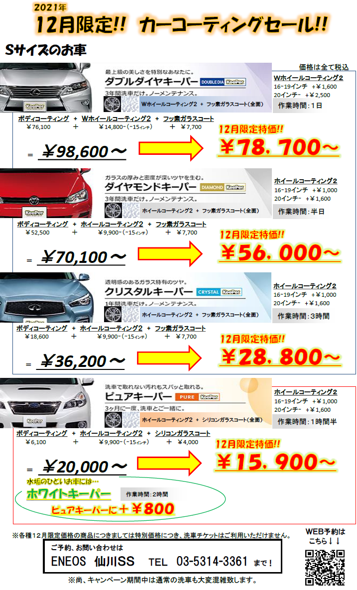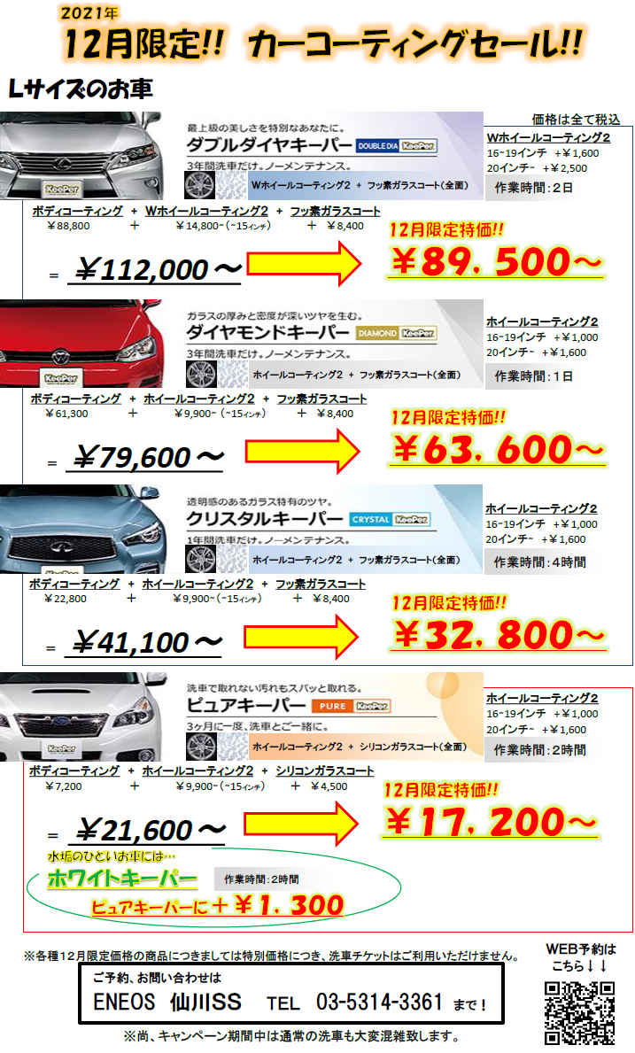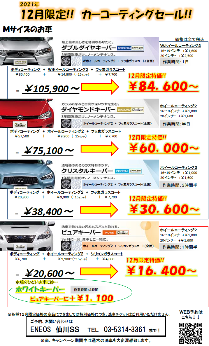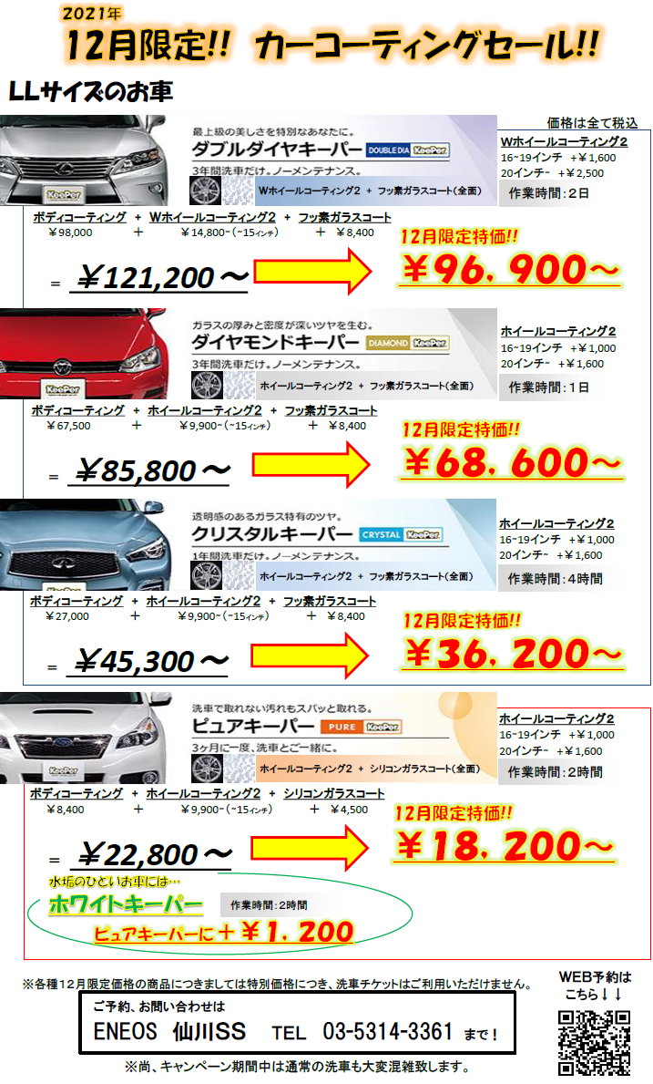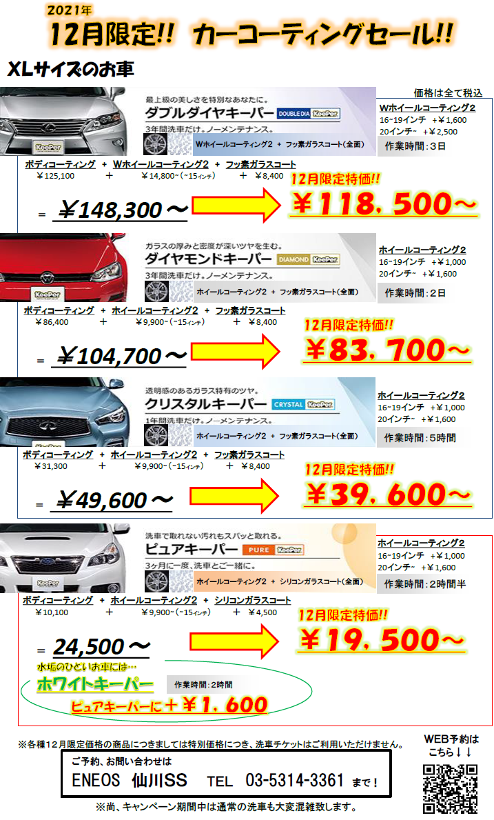 コーティングの施工をご希望の場合は、ご予約後、メニュー内容の確認と日程調整のため、弊社より折り返しお電話いたします。(03-5314-3361)