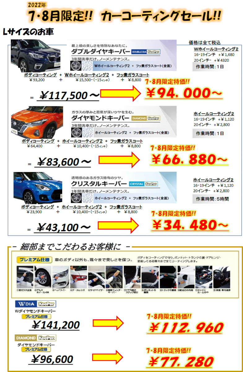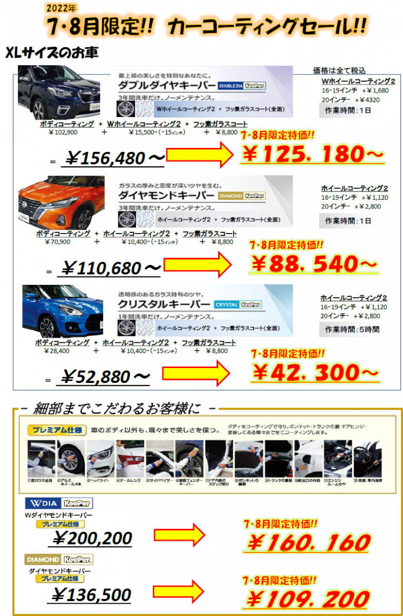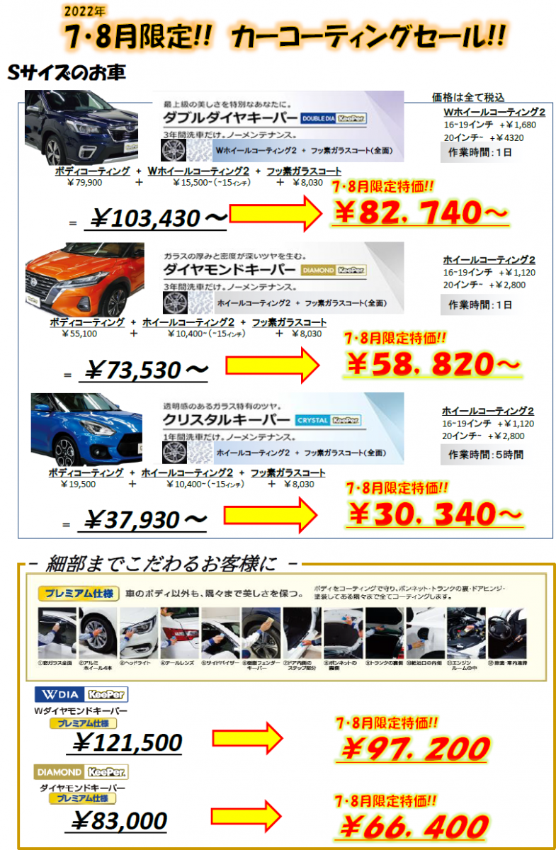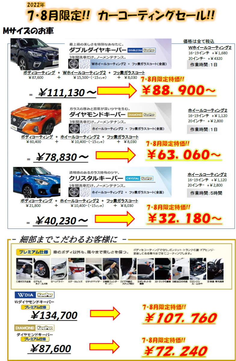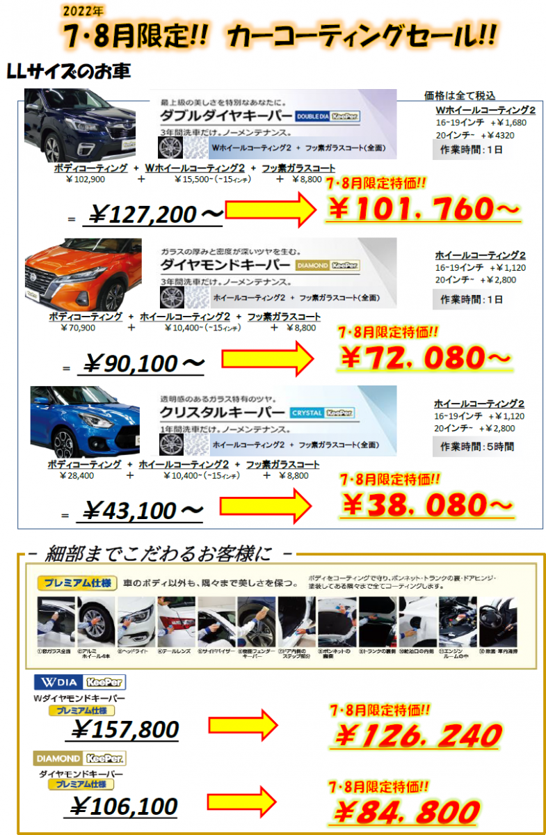 手洗い洗車ご希望で、KEEPER施工車の場合は、施工証をお持ちください。有効期限内であれば、200円サービスいたします。