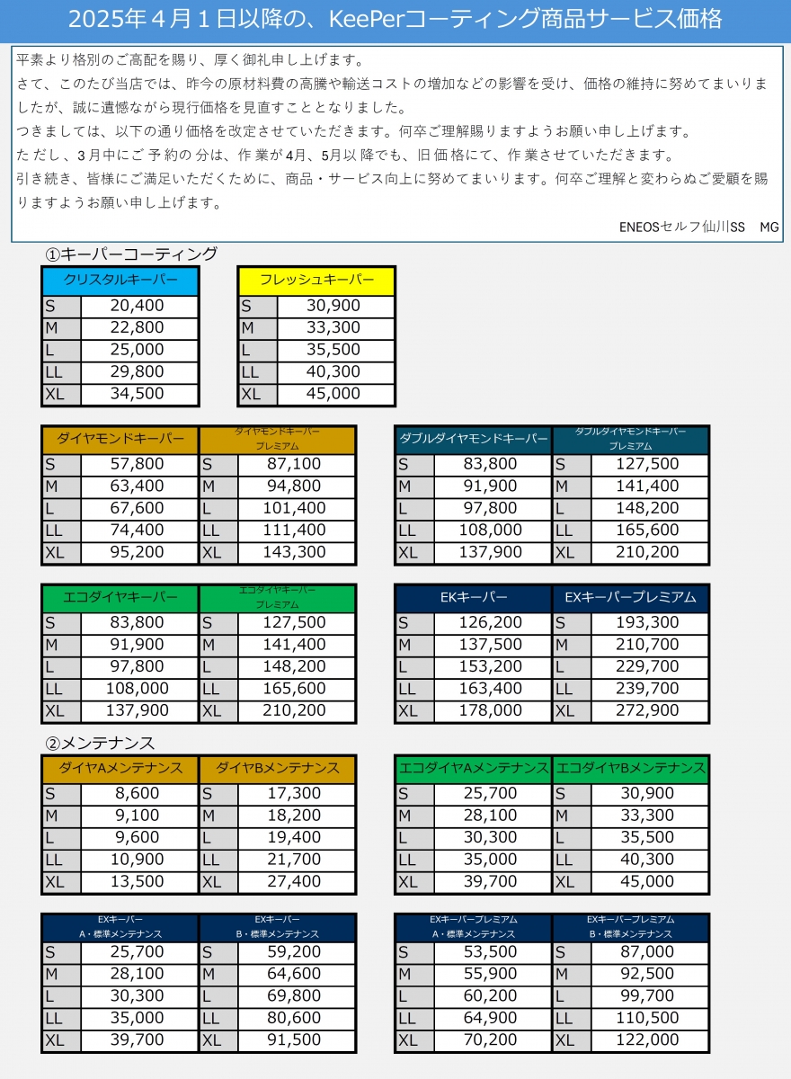 ようこそ! キーパープロショップ ENEOSセルフ仙川SSのHPへ!