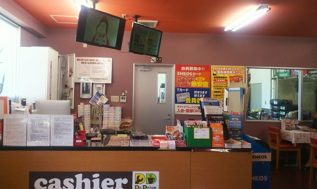 大きな看板が目印のサービスステーションです。
