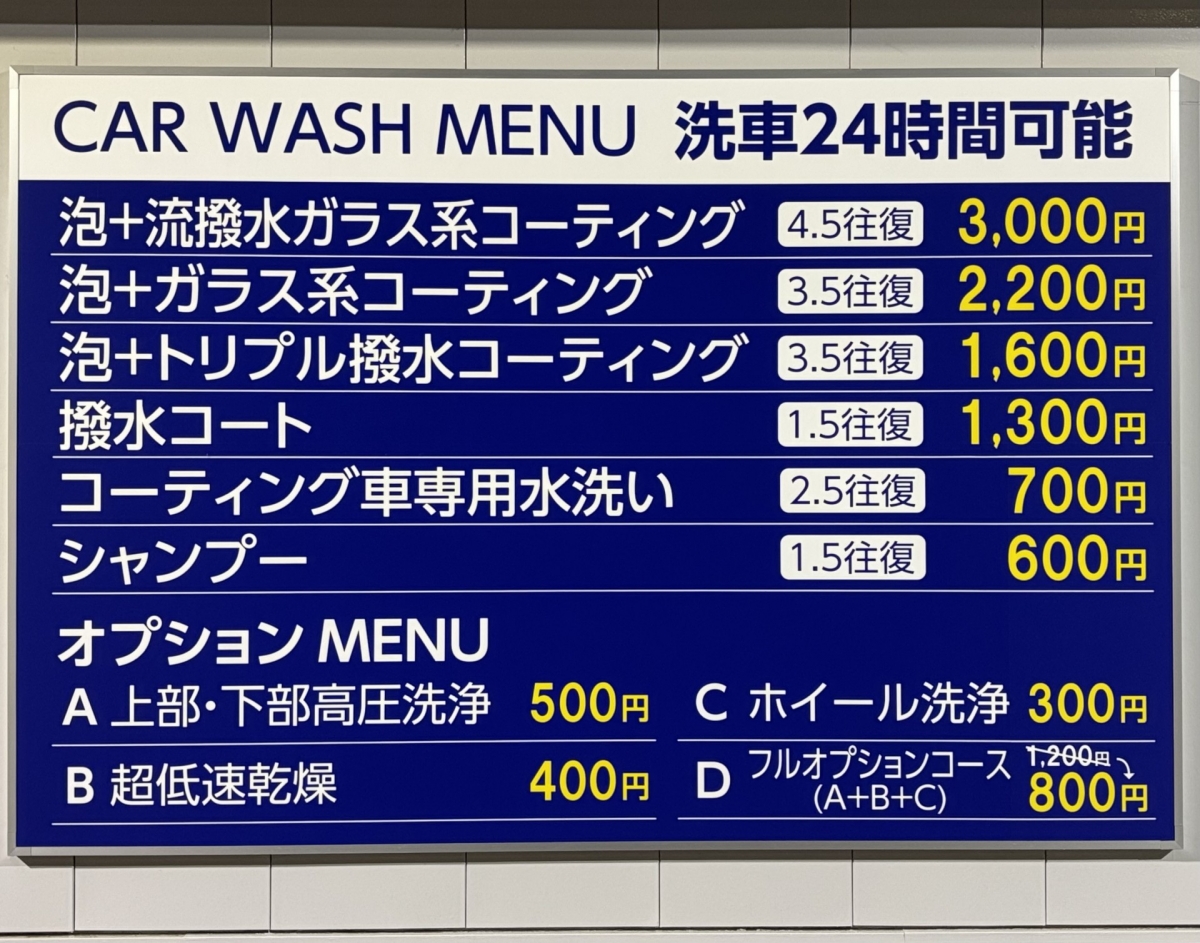 泡+トリプル撥水コーティング 1600円