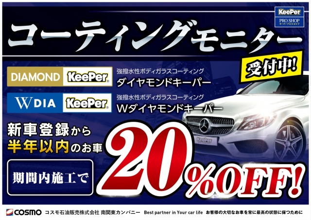 コーティングを始め洗車や他整備のWEB予約を承っております!