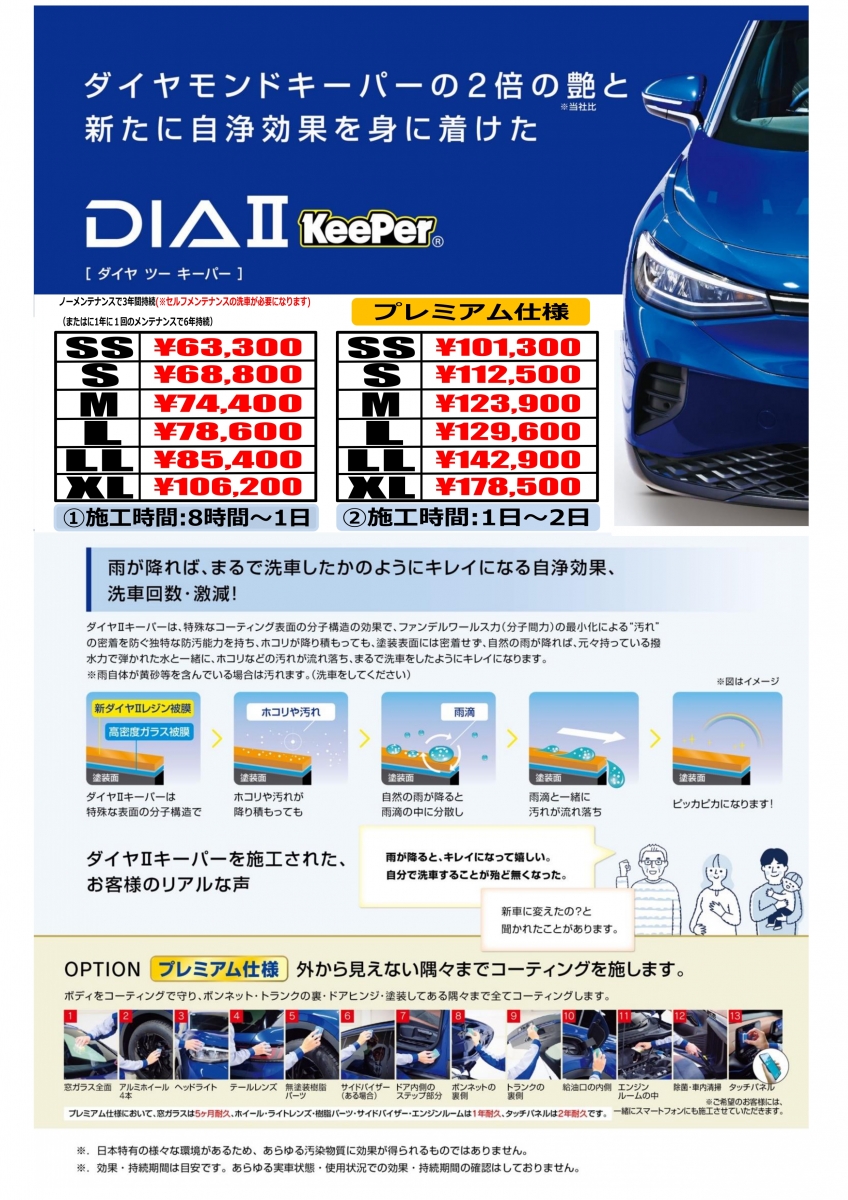 全てのお客様に御満足いただけるよう当店のkeeperコーティングは通常より長くお時間を頂戴しております。
