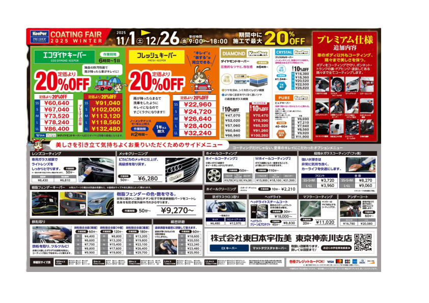 今冬、私共宇佐美新青梅たなし店において、コーティングフェアを開催いたします。
