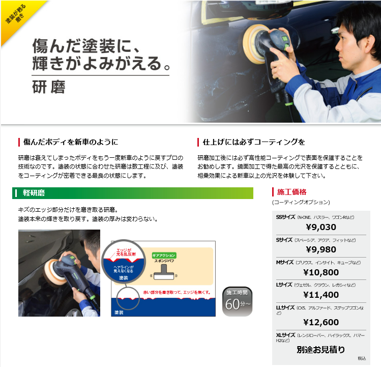 我々のコーティングを、少しでもお得にご提案させて頂きたい。