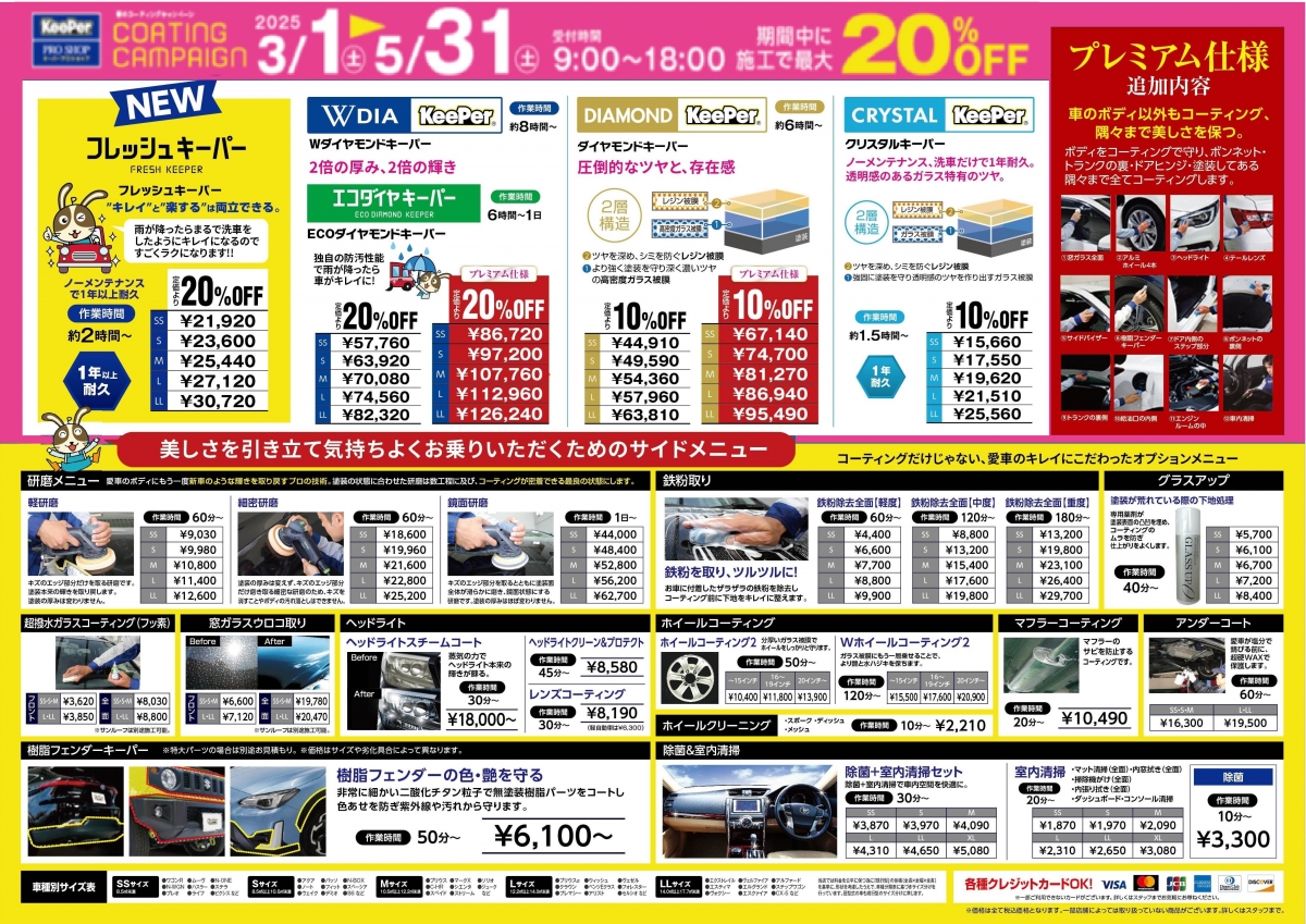 今冬、私共宇佐美新青梅たなし店において、コーティングフェアを開催いたします。