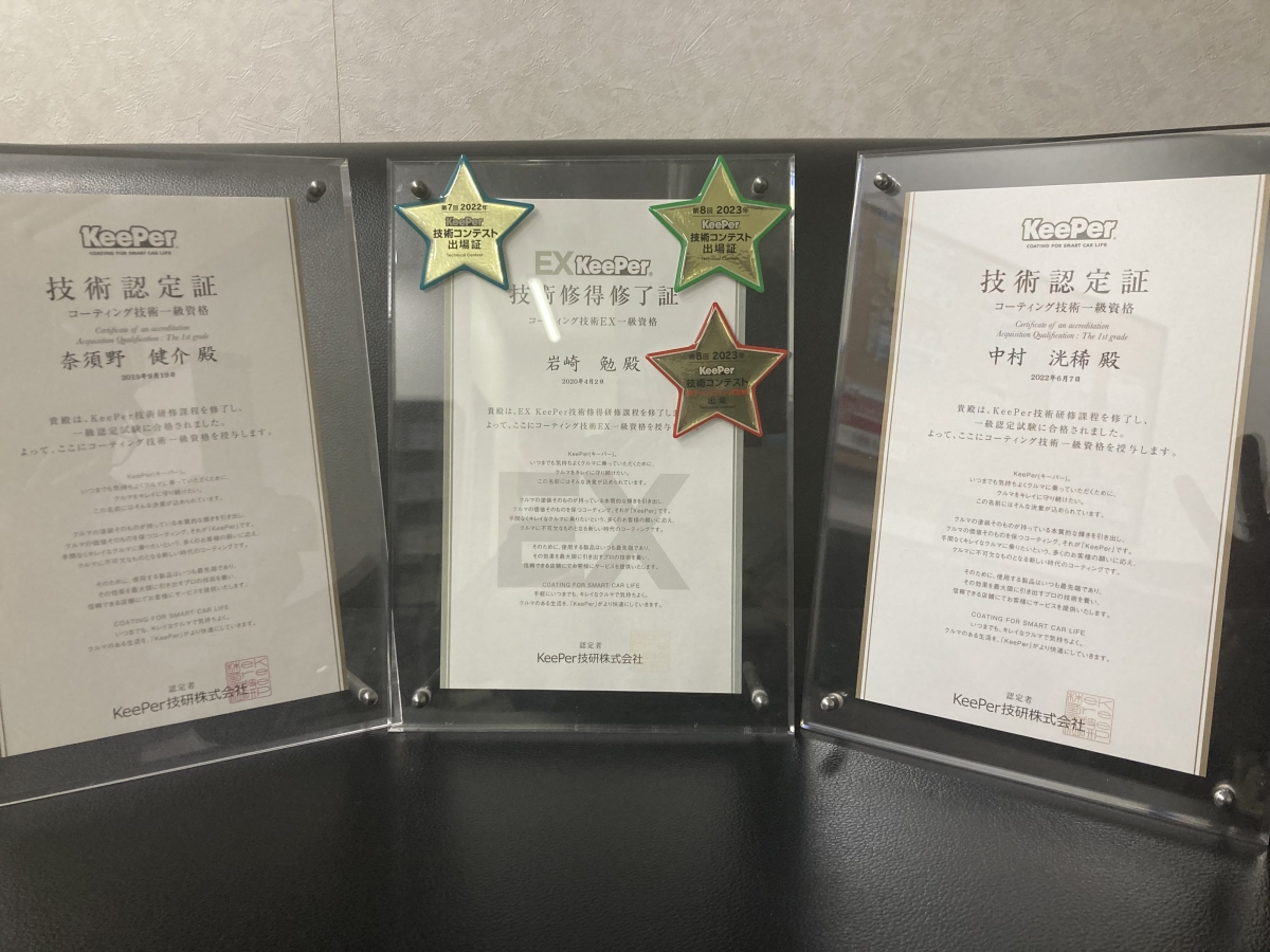 コーティング技術認定EX1級資格取得者1名、 コーティング技術1級資格取得者2名が在籍しております!!