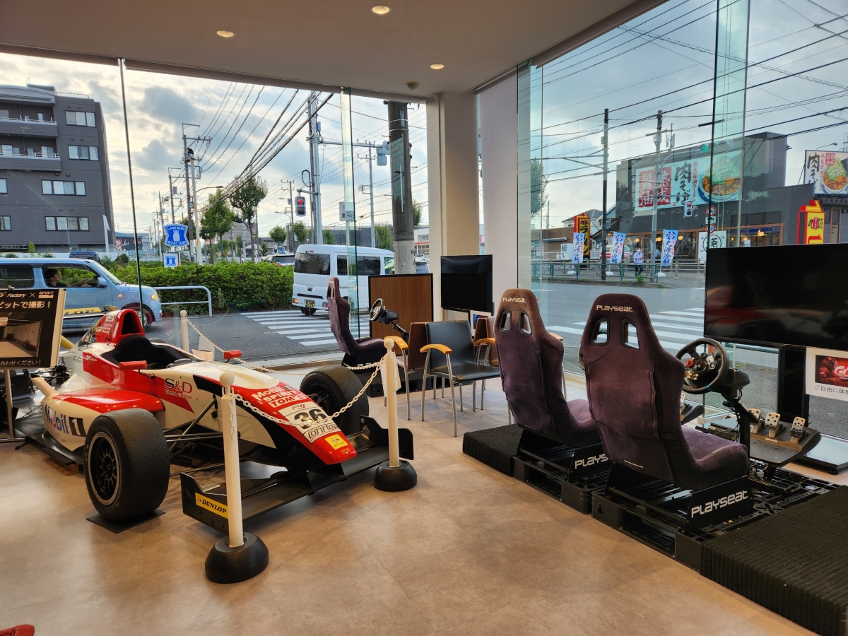 本格的なレーシングシミュレーター(有料)やハンドル、アクセル、ブレーキ、クラッチ操作のレーシングゲーム(無料)が有り楽しめます。また代車の用意もございます(予約必要)