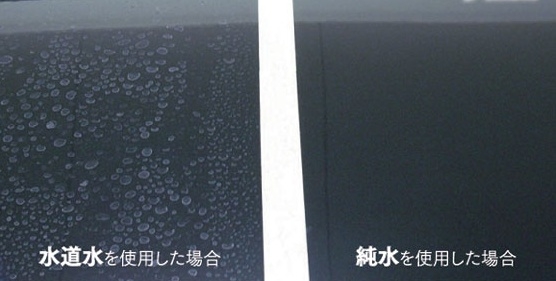 地下水に含まれるミネラルがほぼ完全に取り除かれるため純水独自の透明な仕上がりを実現し、洗車や