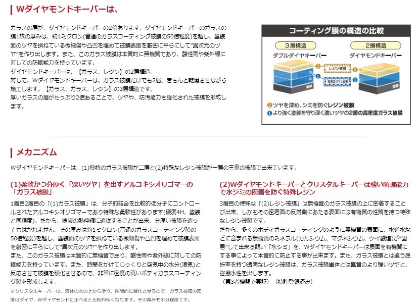 ○ガラスの層がダイヤモンドキーパーの2倍あります。