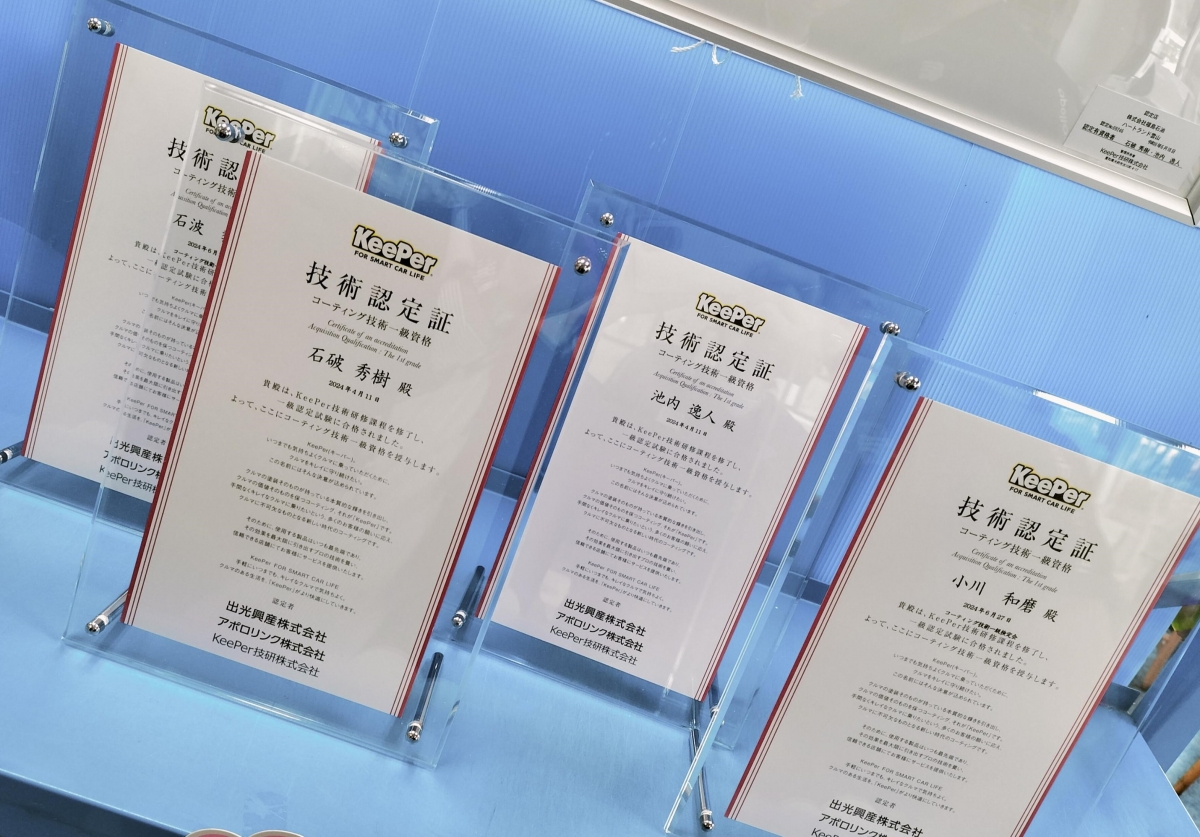 コーティング施工者は全員KeePer技研様の1級施工資格を保持しています!