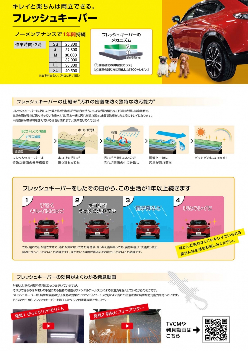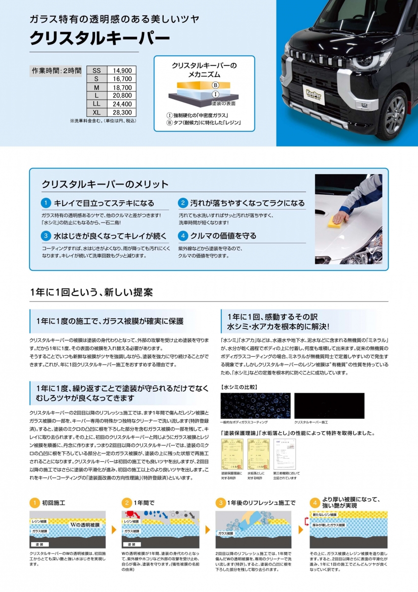 3カ月毎に新車のような輝きの感動を得られます。ポリマー独特の柔らかいツヤもキレイ。