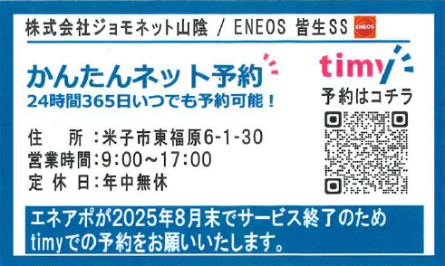 - 洗車・作業 8:00〜19:30