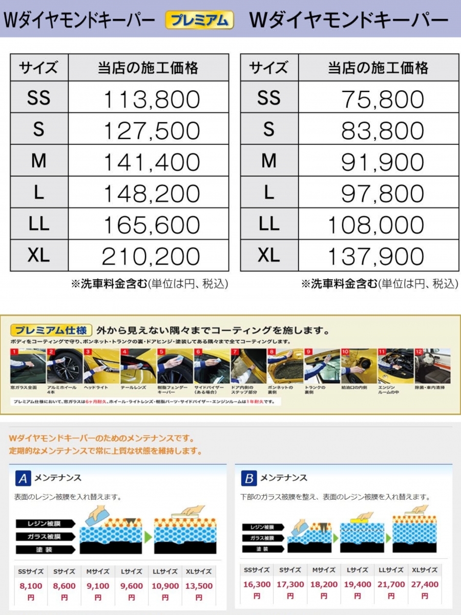 当店では、KeePerコーティング・極上手洗い洗車・ヘッドライトクリーニング・窓ガラスの撥水加工など豊富なメニューを取り揃えております。