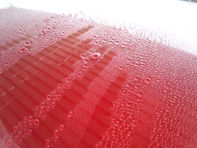 ボディの上をコロコロと雨粒がコロがるので