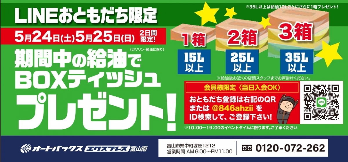 3月 SA富山南店周年祭 給油でBOXティッシュプレゼント!